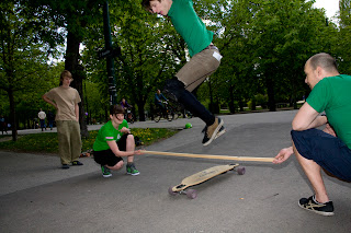 Angefangen von Rollen abmontieren auf Zeit, über Limbo-Sliden/Hippie Jump, Eierlauf, Pärchenrennen hin zu "Push the Girl around the block" und "Follow the voice" (Blinde Kuh auf dem Longboard) war alles dabei.